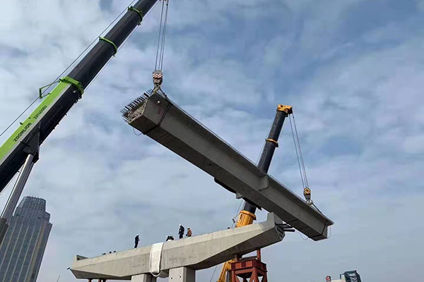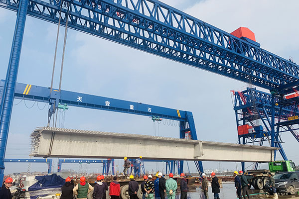 自19年11月23日,天壹重石首梁顺利浇筑开始,在短短50多天里,天壹重石以顺利完成28块小箱梁的浇筑,剩余的小箱梁正在工人们的努力下,紧张有序的进入各自的工序。为保证智慧快速路的顺利,1月12日,首批5榀小箱梁开始运送。下午1点左右,人员开始绑扎小箱梁,并指挥门式起重机开始起吊。随着起重机缓缓的移动,小箱梁运送至专用货车上方。在工作人员的指挥下,小箱梁下移至货车,并进行加固,货车开始将小箱梁运送出厂,按照预订踏勘的运梁线路,运送至指定位置,1月13日,随着第一片重达140余吨的箱梁稳稳地落在墩台上,绍兴智慧快速路(二环北路标段)首片箱梁架设成功,正式拉开了智慧快速路上部结构的序幕。