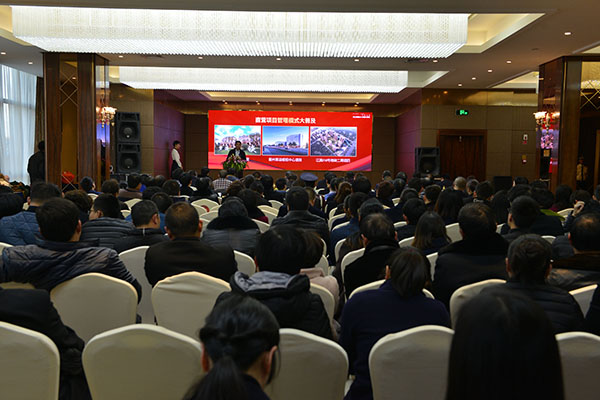 余恒杰在会上作建设线2016年度工作总结报告,孙军华作房产线工作总结报告,陈峰作三产线工作总结报告。