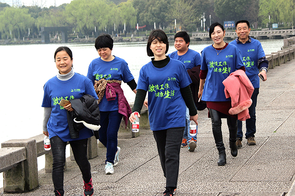 “激情工作,健康生活”,用放松的心境、舒畅的身子去徒步;用独特的眼光和思维去寻找、观察、挖掘、展示瓜渚湖的美丽;用大自然风光之美去浸润我们的心灵、陶冶我们的情操;用激情工作之美去强健我们的身体、促进企业的发展。这是集团公司举办这次活动的本意。为此,员工们都心有灵犀地沉浸在这个本意中寻找契合点,最终达到和谐工作,美好生活的目的。