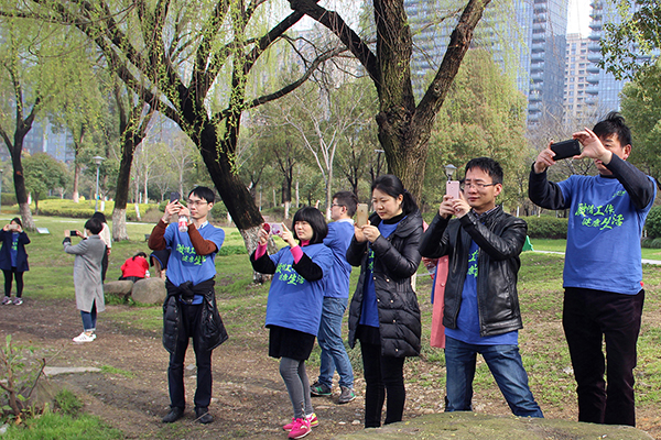 在繁忙的工作中抽身迈步于柯桥第一湖,员工们三五成群,或小心翼翼轻步于瓜渚湖畔,生怕惊动了湖中的飞鸟;或左顾右盼观看一路的景色,尽情地享受着眼福;或手里拿着相机或手机,焦距在满湖的春色中连连按快门……