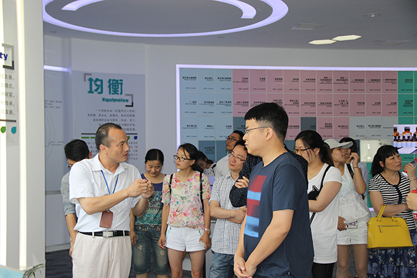 进入新和成总部的大门,一根根混凝土大柱巍峨耸立,鳞次栉比的书架式外立面,融入了新和成董事长胡柏藩“教师出身”的影子。随后,新和成总裁办夏彩云主任等热情洋溢地向大家介绍了公司的发展历程和总部大楼的建设情况。据介绍,新和成控股集团有限公司自1988年创办以来,秉承“创富、均衡、永续”的经营责任观和“创新、人和、竞成”的价值观,以及“创造财富、造福社会”的企业宗旨,实现了跨越式的发展,从一家只有几个人的校办工厂蜕变成了产业涉及精细化工、医药、教育、房产、投资、机械等6大领域的大型控股集团,现有总资产超过85亿元,员工近万名,多个产品填补了国内空白,打破了国际垄断的局面,在全球化竞争中掌握了领先优势。同时,公司于2004年在深圳中小企业板上市。