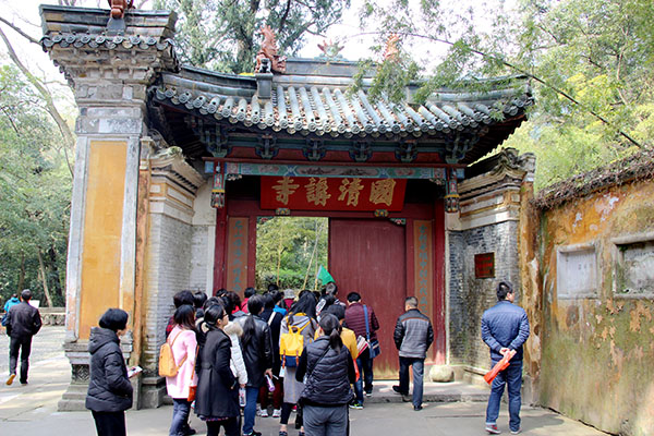 首站,我们来到了国清寺,作为我国佛教宗派天台宗的发祥地,这座占地面积近7.3万平方米的寺院有着它独有的韵味。而这种气息,站在隋代古刹的照壁前时似乎就已经能够感受到了。走进国清寺内,更是让人眼前为之一亮:那释迦牟尼佛像是用青铜铸成的,那贴着真金的十八罗汉是用楠木雕成的,那造型特奇的隋梅有着1300多年的历史,那镇寺之宝的石狮子是用整块汉白玉雕刻而成的……看着这些古老而名贵的实物,大家都感叹我国佛教的源远流长和佛教场所的恢弘博大。许多女同胞都说,国清寺不愧是国家重点文物保护单位,这样宏伟的建筑与深厚的佛教文化底蕴浑然天成,真可谓是大饱眼福啊!