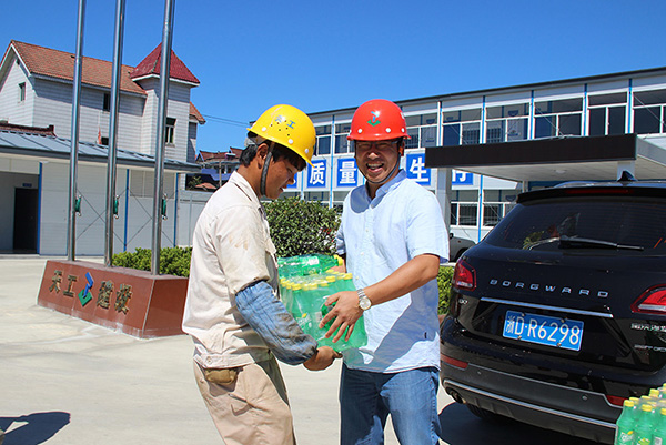 炎炎夏日,骄阳似火。7月17日至19日,在连续高温的日子里,集团公司总经理余恒杰、工会主席孙炎云及有关部门负责人,带上毛巾、香皂、饮料、药品,先后来到钱江房产、唯声科技、跨湖苑、西江望府等8个绍兴项目,亲切慰问冒着高温、奋战在工地第一线的近2000名建设者。