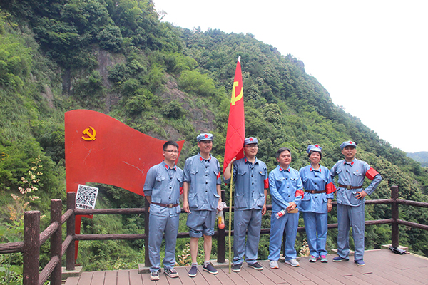 宣誓之后,大家在党旗的引领下,冒着高温酷暑,开始雪窦岭古道的徒步毅行活动,大家发扬团队合作精神与吃苦耐劳精神,最终都顺利到达了徒步活动的终点,虽然身体很疲惫,也很热,但也收获了完成目标与任务的喜悦与成就感。并为响应习近平总书记提出的“绿水青山就是金山银山”的倡导要求,对古道开展了公益捡垃圾的活动,用实际行动来保护大自然的美丽环境。