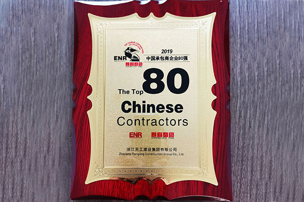 2019年11月8日,由美国ENR杂志和中国《建筑时报》合作举办的中国承包商和工程设计企业颁奖活动在杭州举行。活动中,集团公司荣获“2019年中国承包商80强”称号而出席颁奖典礼。