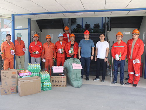 8月3日-5日,余恒杰、胡卡尔、张贤方等集团领导在连续高温的日子里,带着防暑降温慰问品,走访集团旗下项目现场,亲切慰问奋战在生产一线的员工。