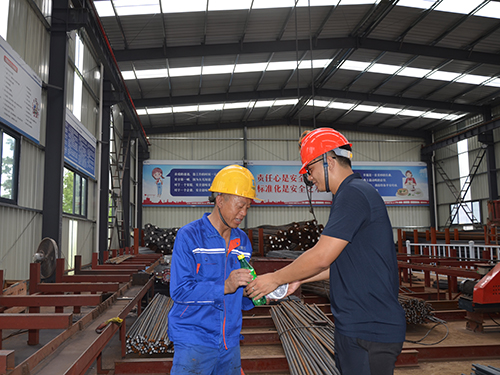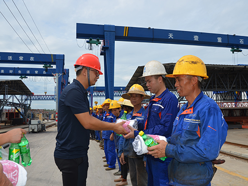 在天壹重石工地,胡卡尔为一线员工的送上了高温慰问品,对大家在高温期间坚守岗位表示感谢,并叮嘱大家在做好本职工作的同时,也要注意高温酷暑下的自我防护,合理安排作业时间,注重劳逸结合,克服高温酷暑。