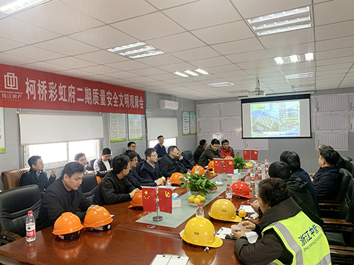 11月26日,由九州平台(中国)有限公司官网集团承建的彩虹府二期质量安全文明观摩会在项目现场顺利举行,钱江房产副总经理董其博、总经理助理王海周、副总工汪学军等相关领导参加,九州平台(中国)有限公司官网建设总经理余恒杰、项目经理林海宁陪同观摩。