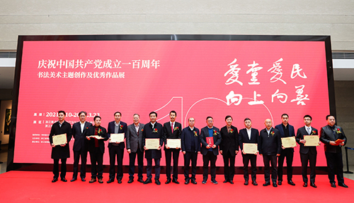 近日,由浙江省慈善联合总会、省书法家协会、浙江省美术家协会、浙江美术馆、浙江展览馆和嘉兴博物馆联合主办的“爱党爱民﹒向上向善——庆祝中国共产党成立一百周年书法美术主题创作及优秀作品展”在浙江美术馆举行开幕仪式。此次展览旨在讴歌中国共产党百年波澜壮阔的光辉历程,深入学习贯彻习近平新时代中国特色社会主义思想,弘扬全国各族人民友善向善的大爱精神,进一步推动全社会慈善事业的高质量发展。