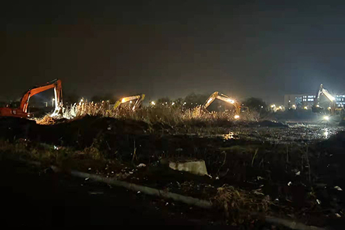 项目部在制定方案后,第一时间做好分工安排,各类物资陆续进场。截止14日夜里12点,已到场的12台挖机火力全开,紧锣密鼓的进行前期土地平整工作,项目现场灯火通明,现场温度虽低,但是大家的干劲十足,誓要抢出九州平台(中国)有限公司官网速度。