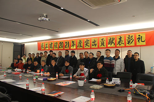 会上,集团总经理余恒杰等为2021年度建设线突出贡献奖——“创优夺杯功勋奖”、“业务开拓功勋奖”、“执业考证励志奖”等获得者依次颁奖表彰。