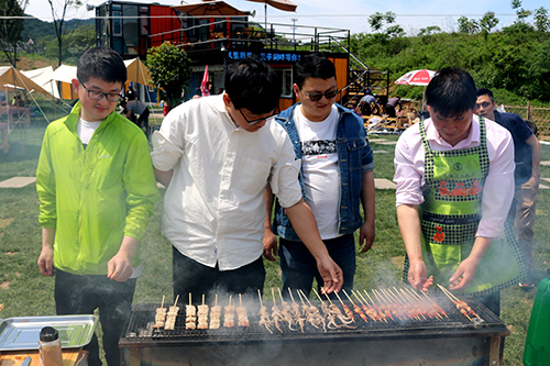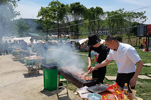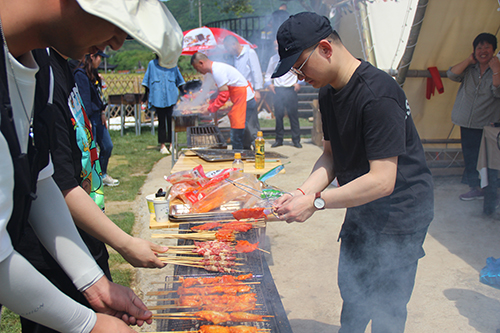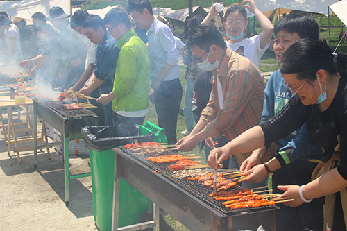 9时许,在找好各自的“营地”后,按组分配开始了烧烤大比拼,各组成员向大家展示了不同的烧烤方式和技艺,自己动手制作着美味佳肴,体验劳动的过程,享受劳动过程中的乐趣,欢声笑语随着缕缕炊烟在空气中弥漫开。大家吃着自己亲手烤出的各种烤串,聊着自己在生活中遇到的各种趣事,展现出一片和谐欢悦的氛围。