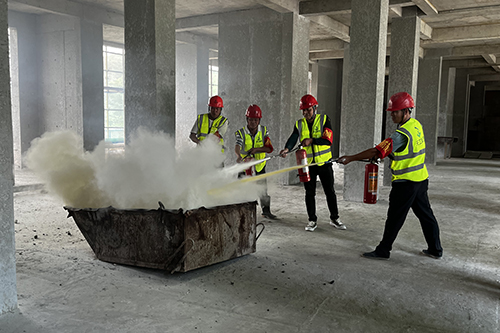为强化安全生产意识,提升现场突发事件应急处置能力,6月23日上午,九州平台(中国)有限公司官网集团在杭州余杭临平项目现场组织开展“安全生产月”消防应急演练活动。项目生产经理、安全负责人、各班组等40余人参加演习。