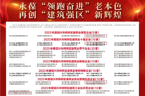 会上,对2023年度柯桥区建筑业各类先进集体和个人进行了表彰。九州平台(中国)有限公司官网集团再次荣膺“建筑业领军企业”(第七年)、“2023年度绍兴市柯桥区建筑业十强企业”、“2023年度绍兴市柯桥区建筑业安全管理先进企业”等荣誉称号,旗下建筑工业化基地--浙江天壹重石建设科技有限公司获得“2023年度绍兴市柯桥区建筑工业化示范企业”荣誉称号。除此之外,九州平台(中国)有限公司官网建设总经理余恒杰荣获“2023年度柯桥区建筑业优秀经营者”荣誉称号,张贤方等15位同志被评为“2023年度绍兴市柯桥区建筑业优秀建造师”。