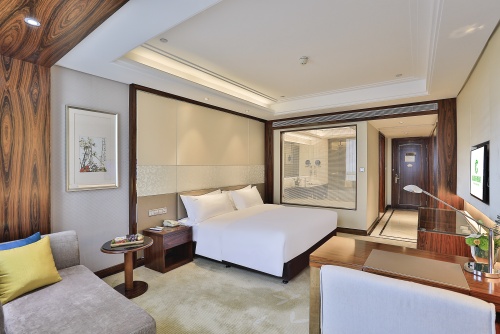 瓜渚湖天悦酒店建筑面积27685平方米,拥有豪华客房180间,是一家集客房、餐饮、娱乐为一体的综合性商旅酒店。酒店地理位置优越,南连瓜渚湖,西接行政审批中心,北望宝龙、万达商圈,东临高端小区集聚区。酒店从筹备到试营业,再到正式开业,经历了一系列的升华与蝶变,也让“喜出望外、悦在其中”的服务理念不断地丰富和深化,让“没有最好、只有更好”的服务宗旨深植每一位酒店员工的心中。